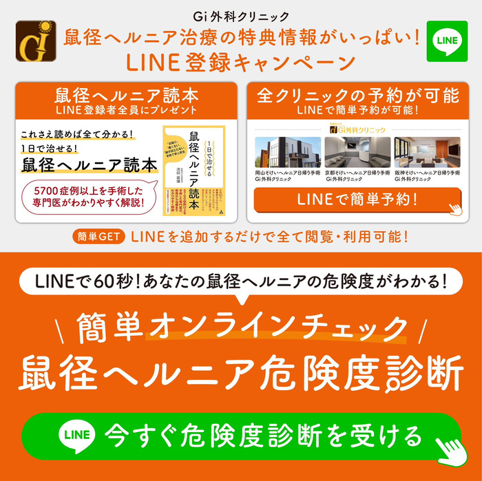 LINEに追加いただくと、鼠径ヘルニアの危険度診断が簡単にできます。