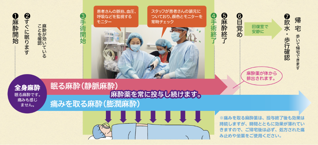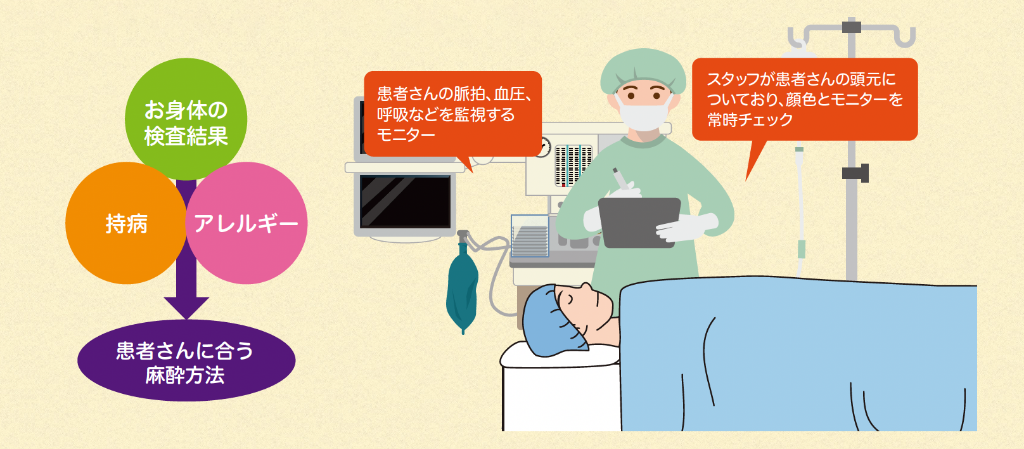 皆さまに安心して手術に臨んでいただけるよう、こちらでは当院で行う全身麻酔について説明させていただきます。